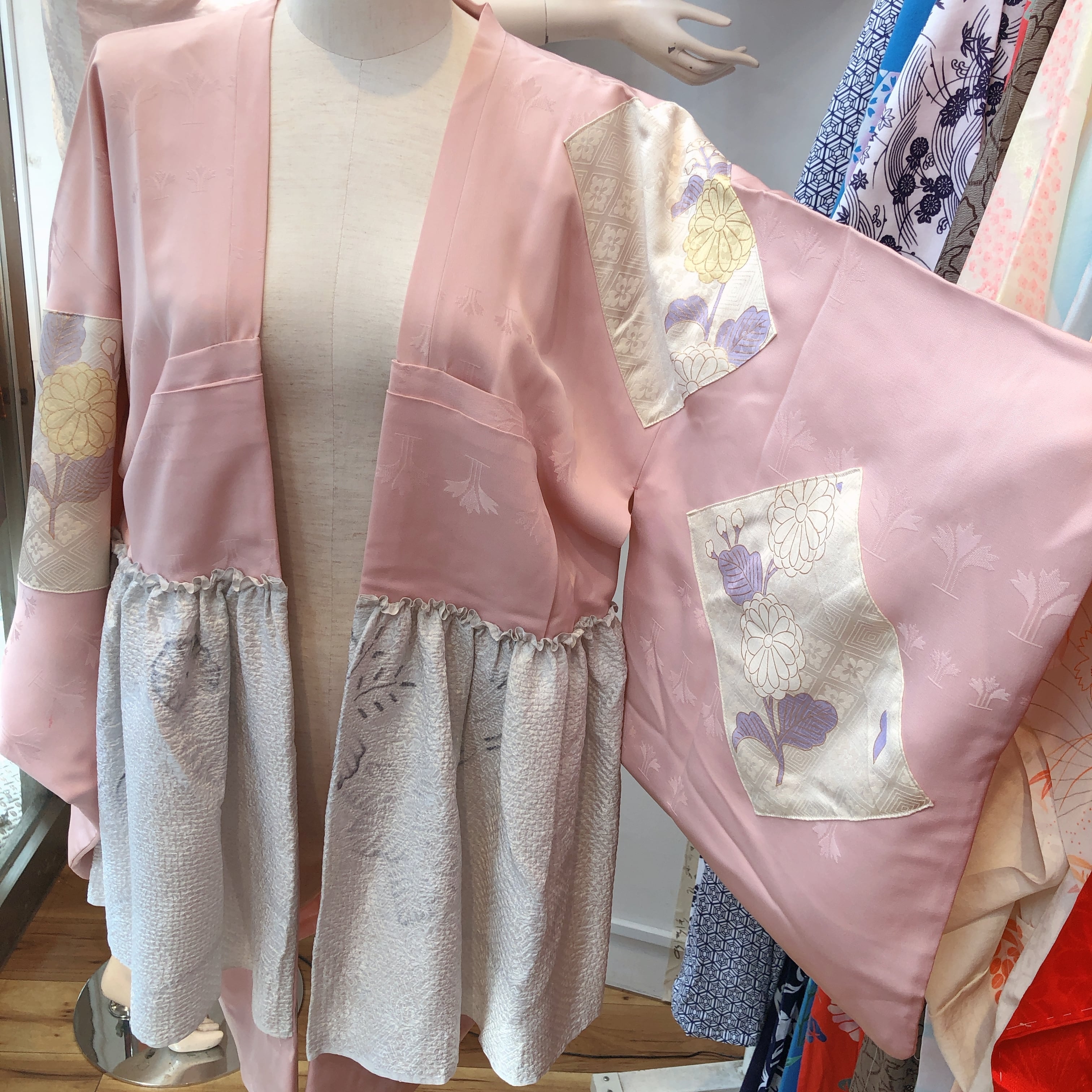 B21 着物ジャケット ~ 花、フリル、ピンク、水色、衣装