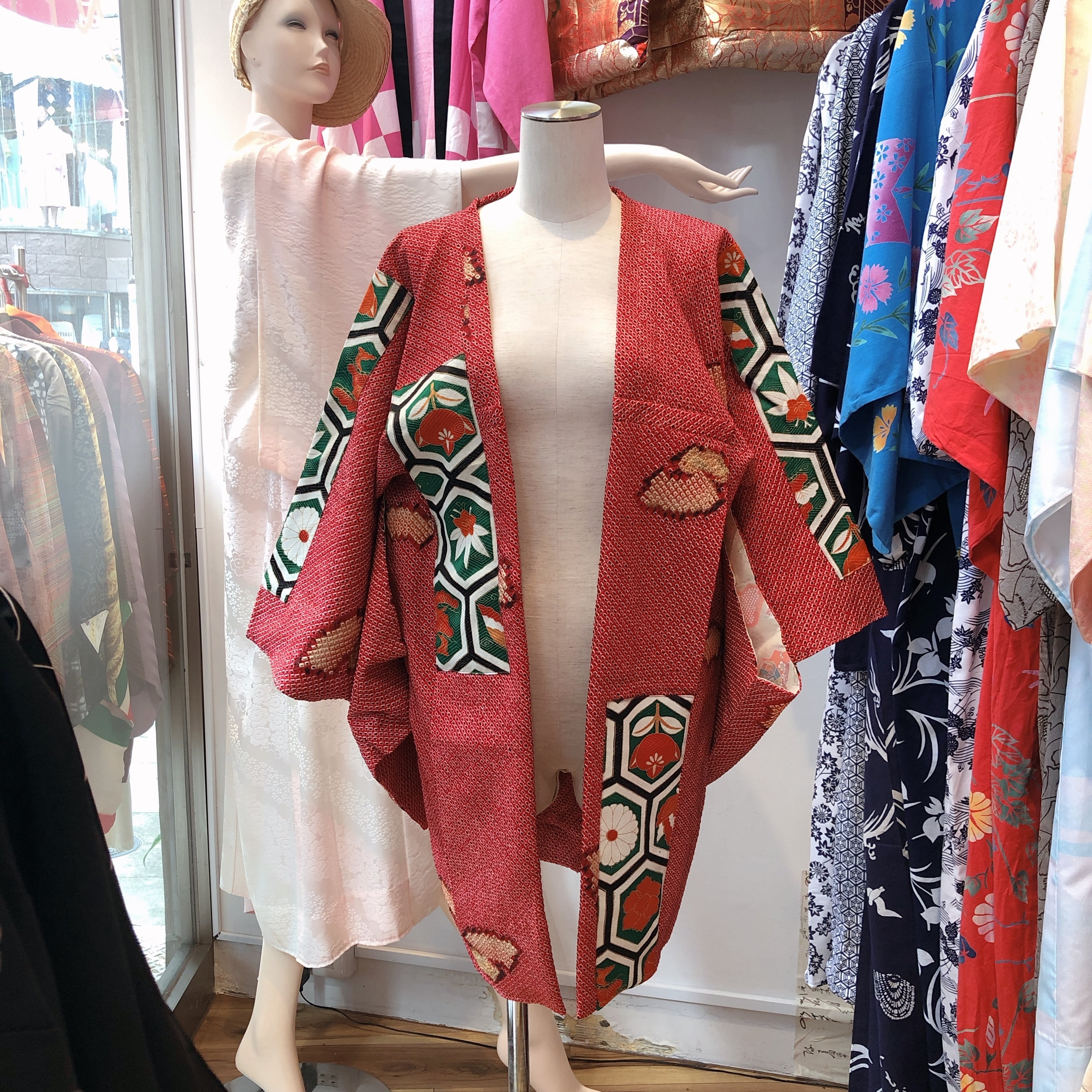 B7 着物ガウン〜リメイク、衣装、絞り、赤、着物コート〜