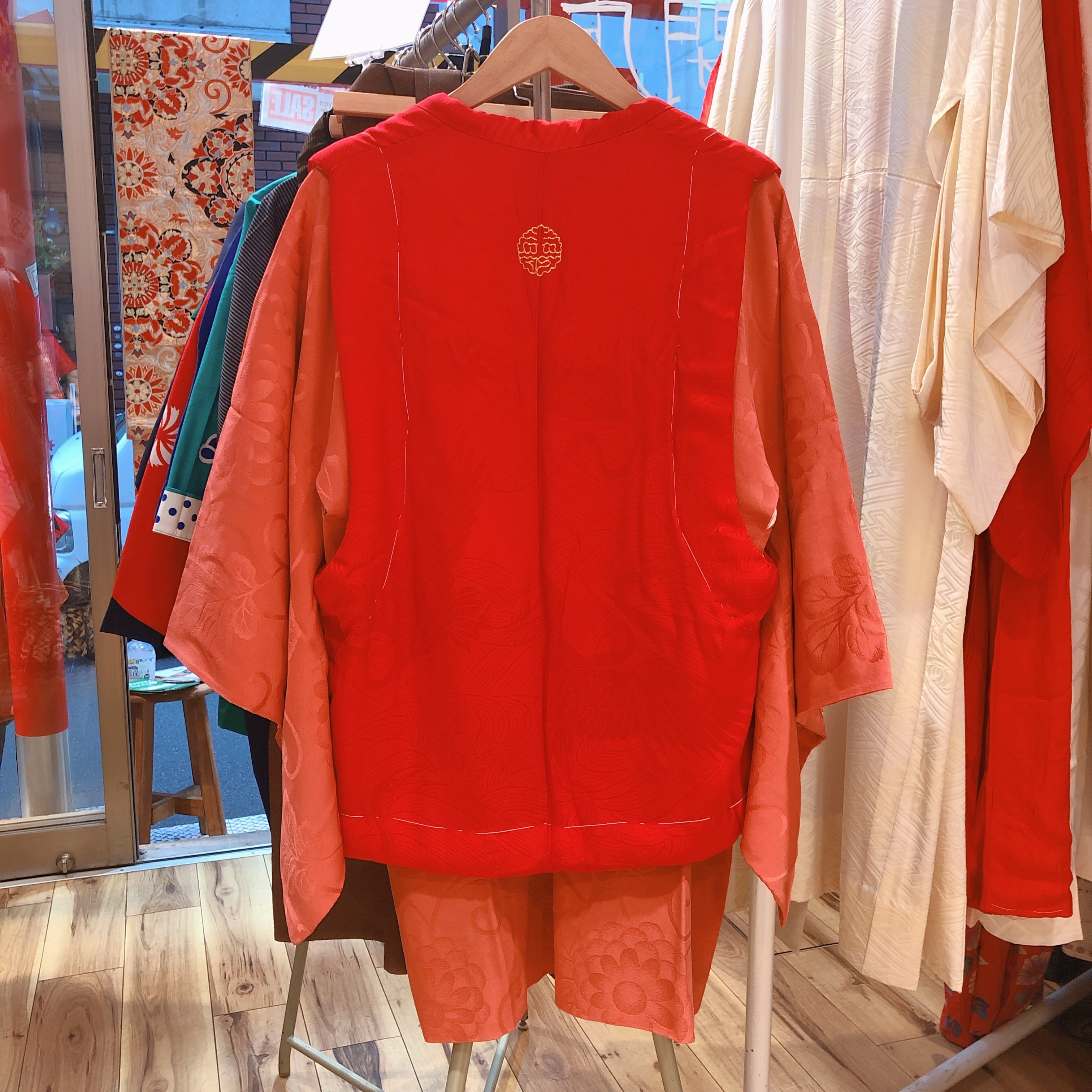 着物ガウン ~ リメイク、赤、ベスト、ビンテージ、衣装 ~