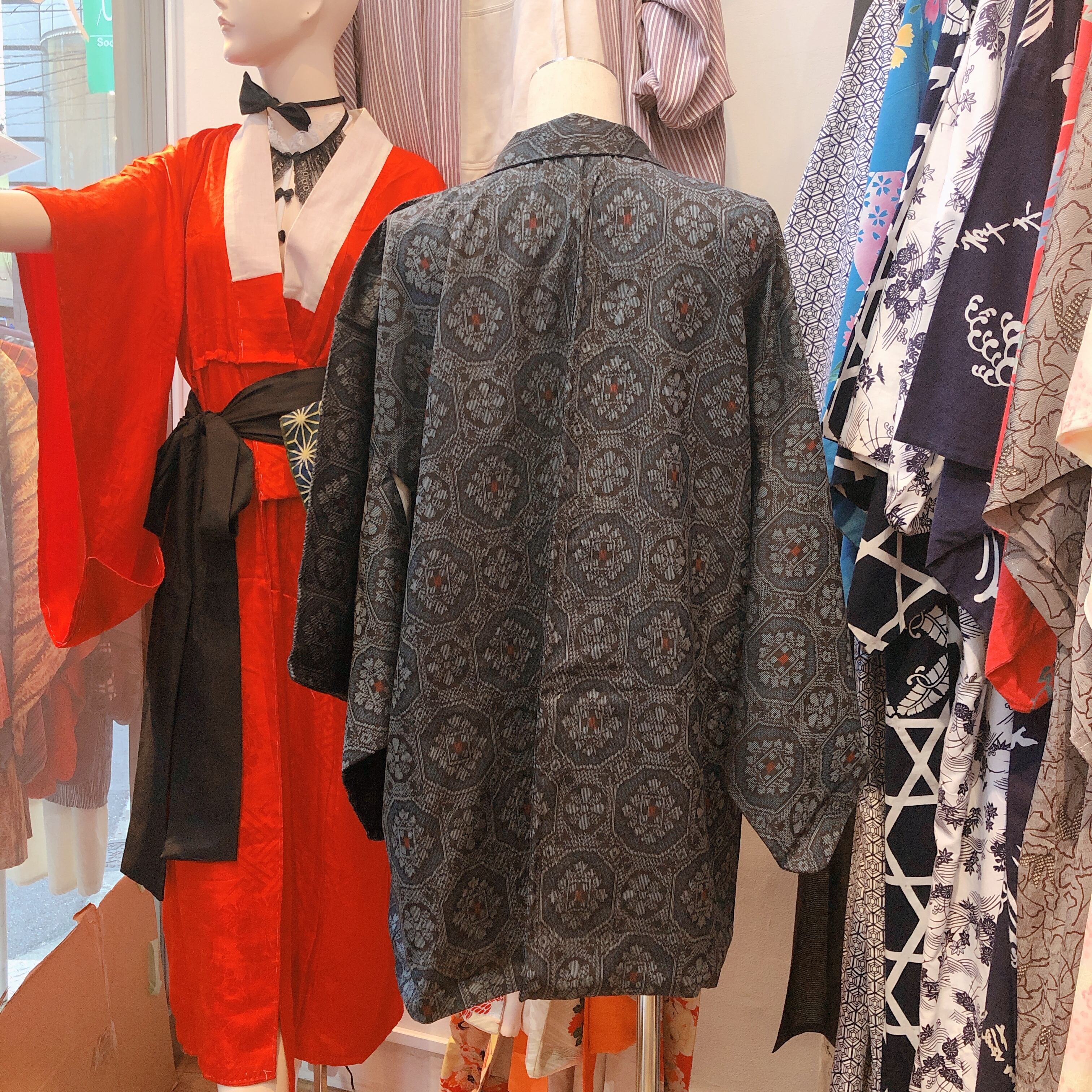 B36 羽織り ~ 大島紬、ガウン、着物、ブルー ~