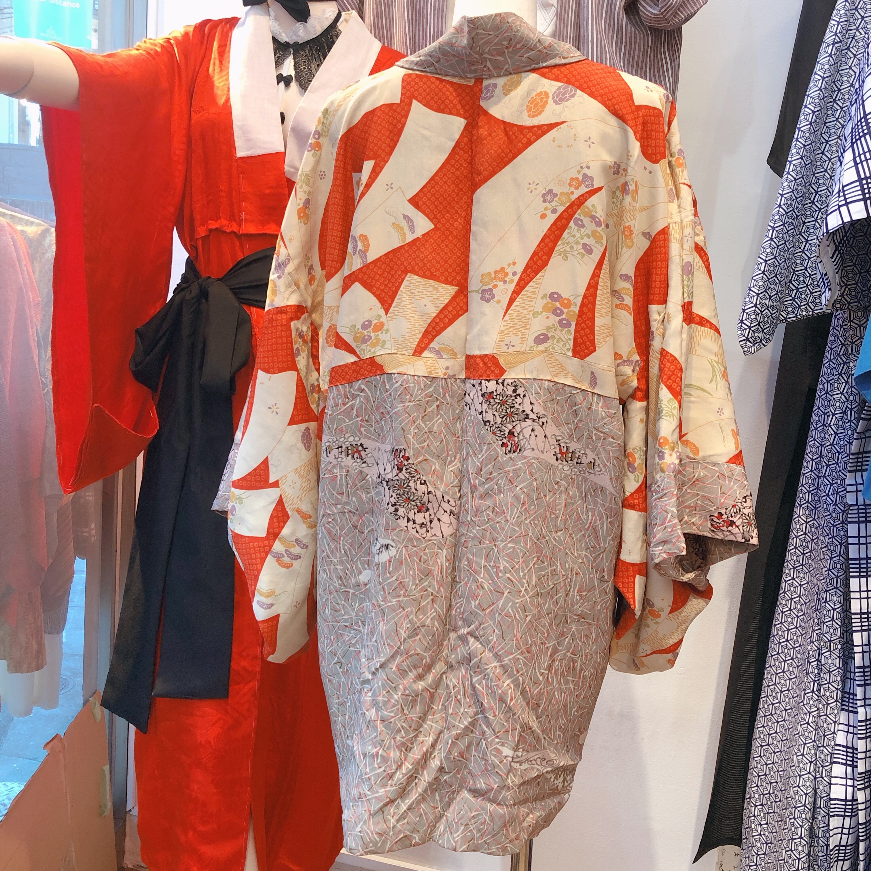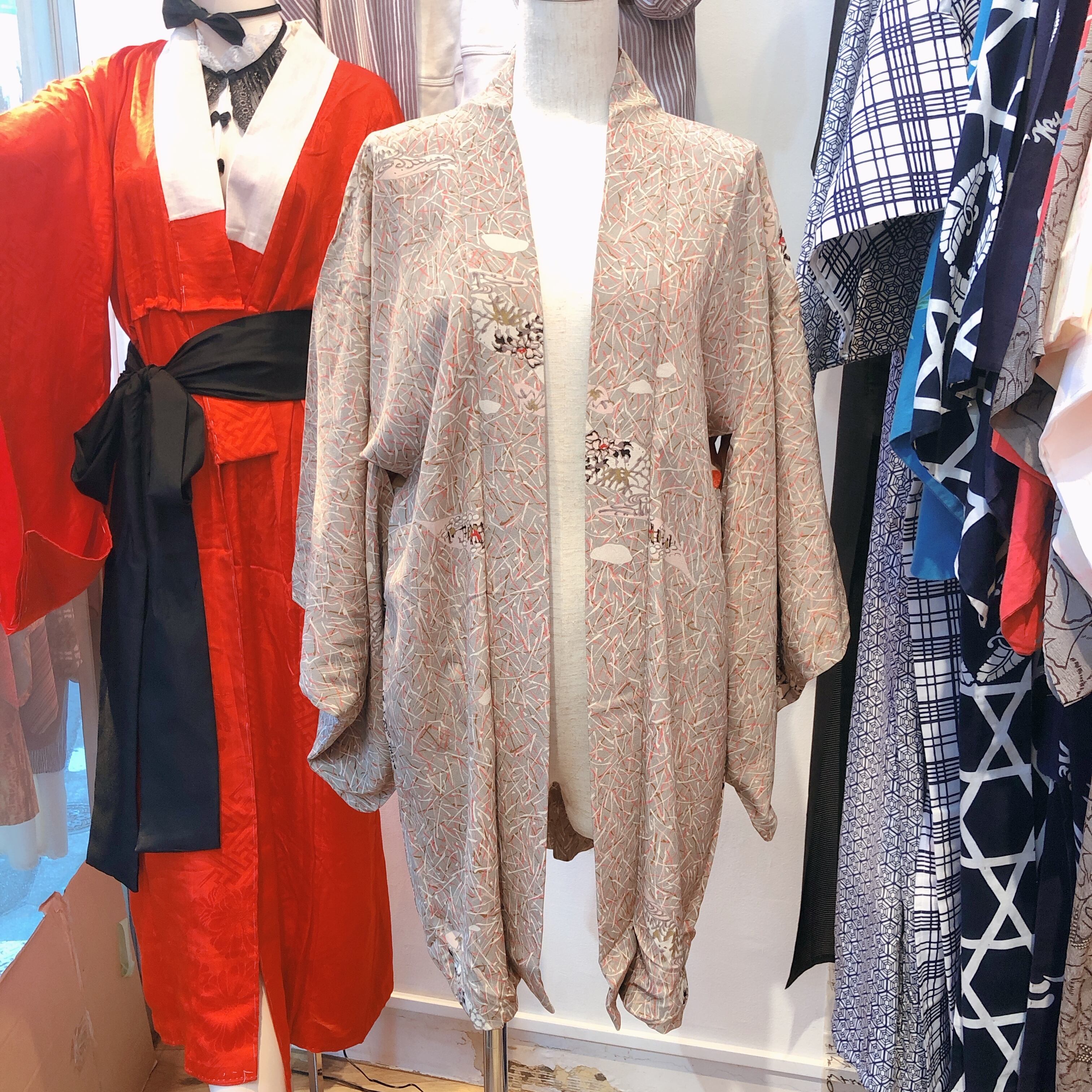 B44 羽織り ~絹、ビンテージ、カーキ、衣装、着物 ~