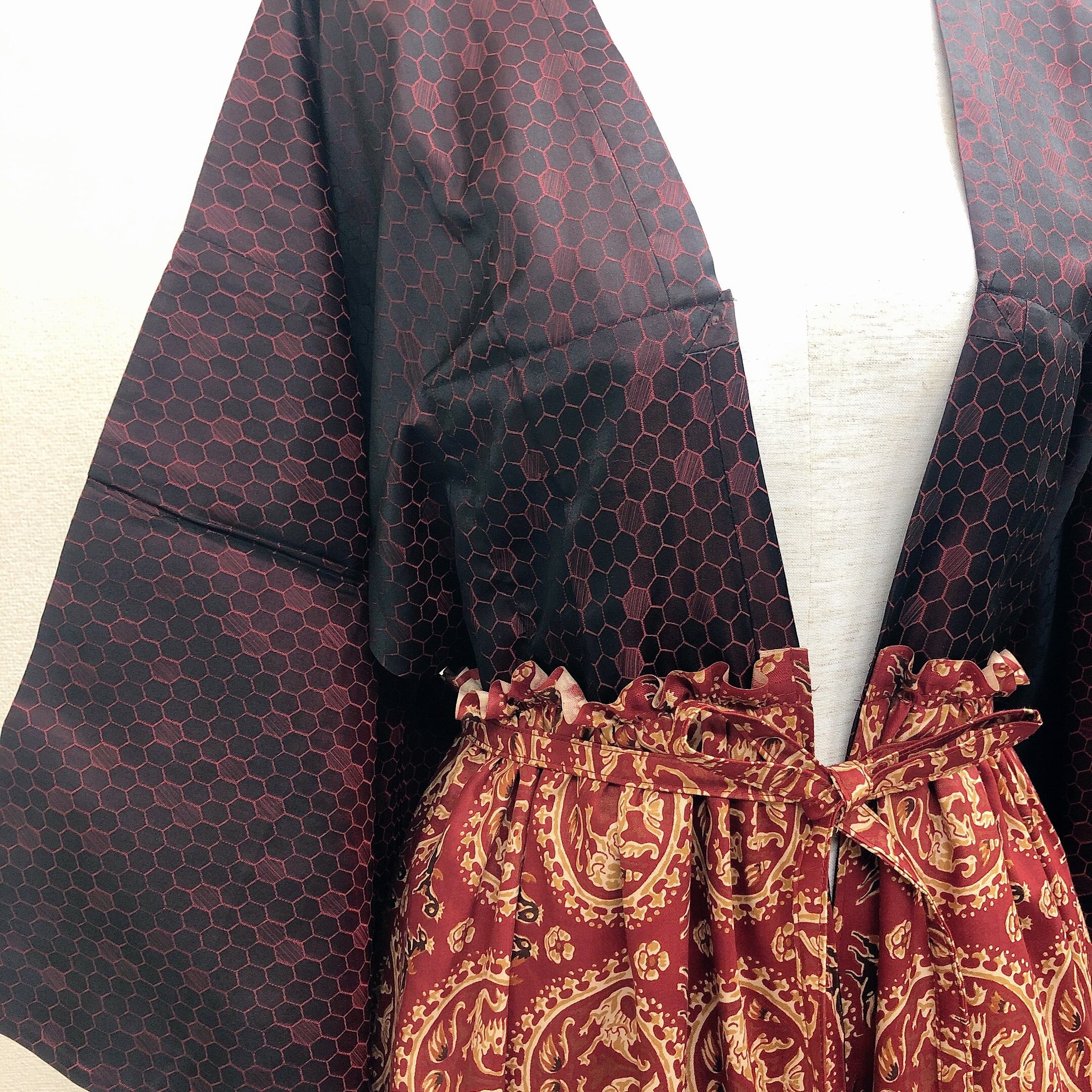 B59リメイクガウン ~ ロング、えんじ色、黒、赤、着物、衣装、ビンテージ ~