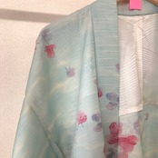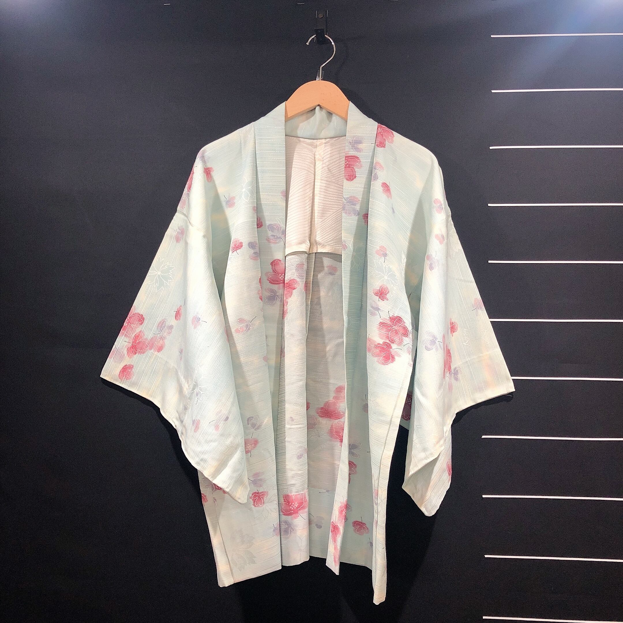 sh8 色羽織 ~ 水色、花柄、ガウン、シルク、ビンテージ ~
